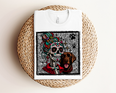 Skeleton with Chocolate Lab PNG